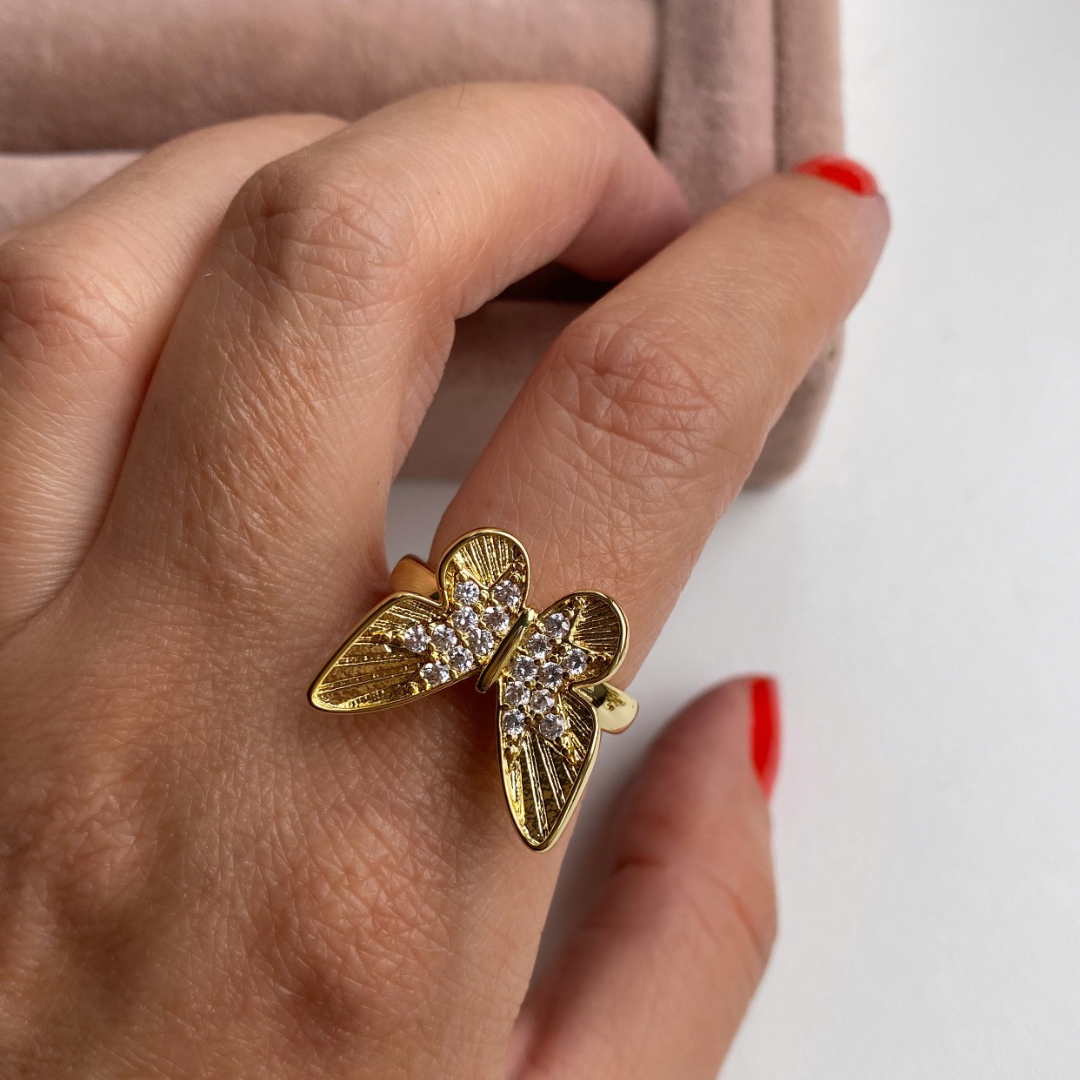 Ayarlanabilir Taşlı Kelebek Yüzük